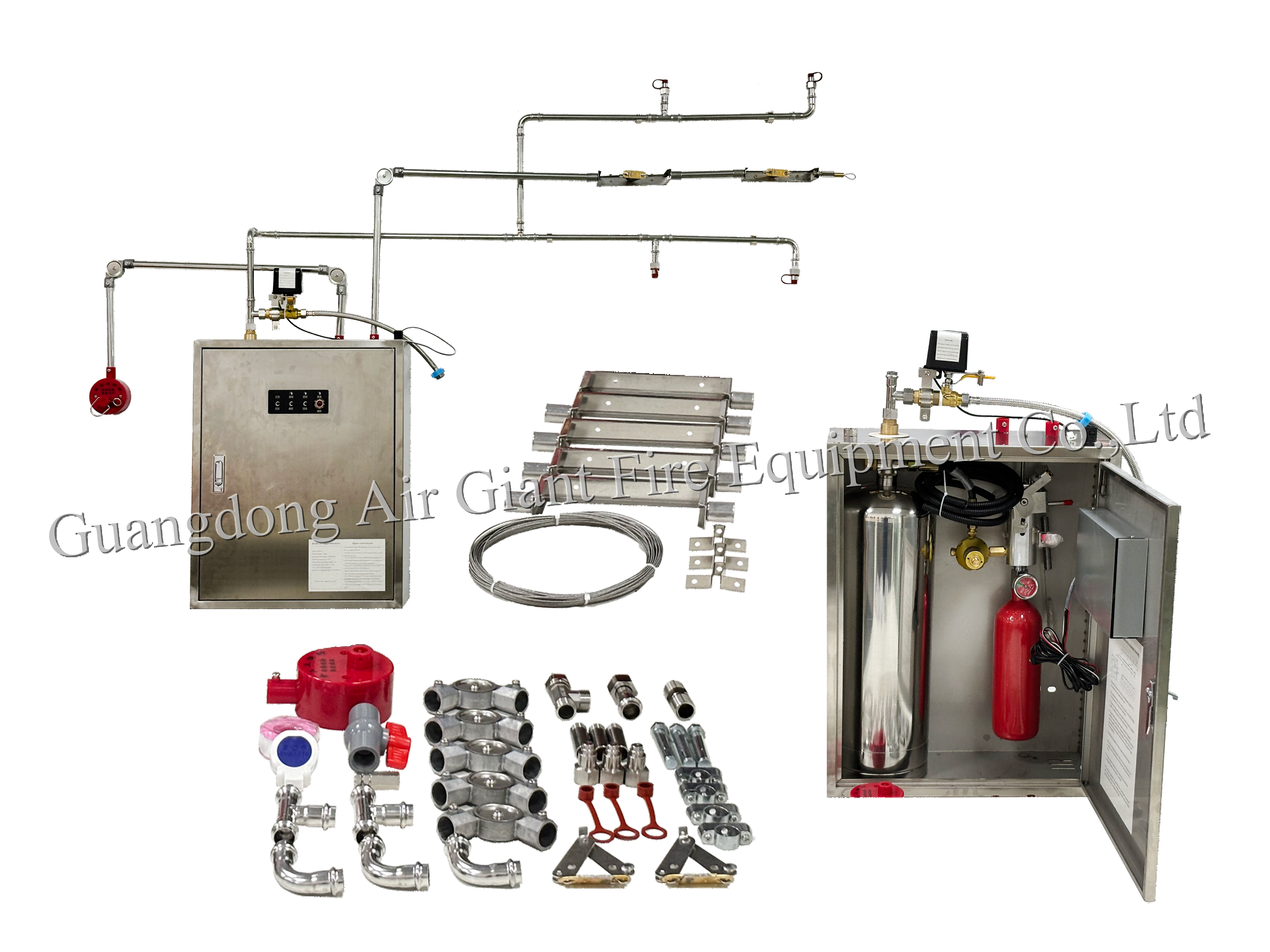 Mutfaklardaki yaygın yemek yağı yangınlarını daha iyi ele almak için, yangın söndürme sistemi, yemek yağları için tasarlanmış özel bir yangın söndürme maddesi ile donatılmıştır. Bu madde toksik olmayan, kokusuz, çevreye zarar vermeyen ve temizlemesi kolaydır, güvenlik sağlarken aynı zamanda kullanımdan sonraki temizliği de dikkate alır. Yağ gibi yanıcı maddelerin neden olduğu yangınları hızla söndürebilir ve yangının yeniden alevlenmesini etkili bir şekilde önleyebilir.