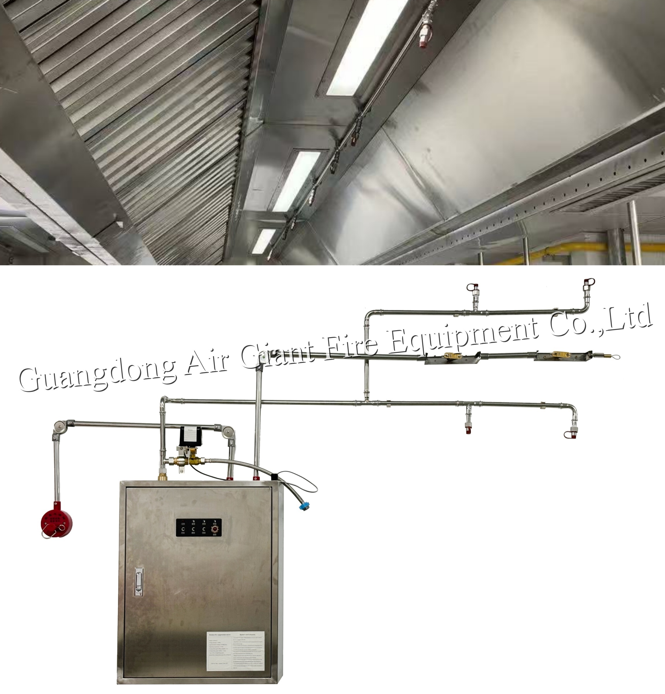 1.Yangın söndürme ajanı püskürtme: Serbest bırakma mekanizması etkinleştirildikten sonra, sıvı yangın söndürme ajanları (örneğin köpük, kuru toz,veya diğer özel maddeler) fıskiyelerle mutfak soba ekipmanlarının yüzeylerine püskürtülür., aynı zamanda egzoz kapağı, yağ filtresi ve egzoz kanallarının içinde.Bu özel maddeler, petrol kazanındaki alevleri hızlıca söndürebilir ve petrol buharlarının yanmasını önlemek için bir kaplama katmanı oluşturabilir, böylece tekrar ateşlenmesini önler.